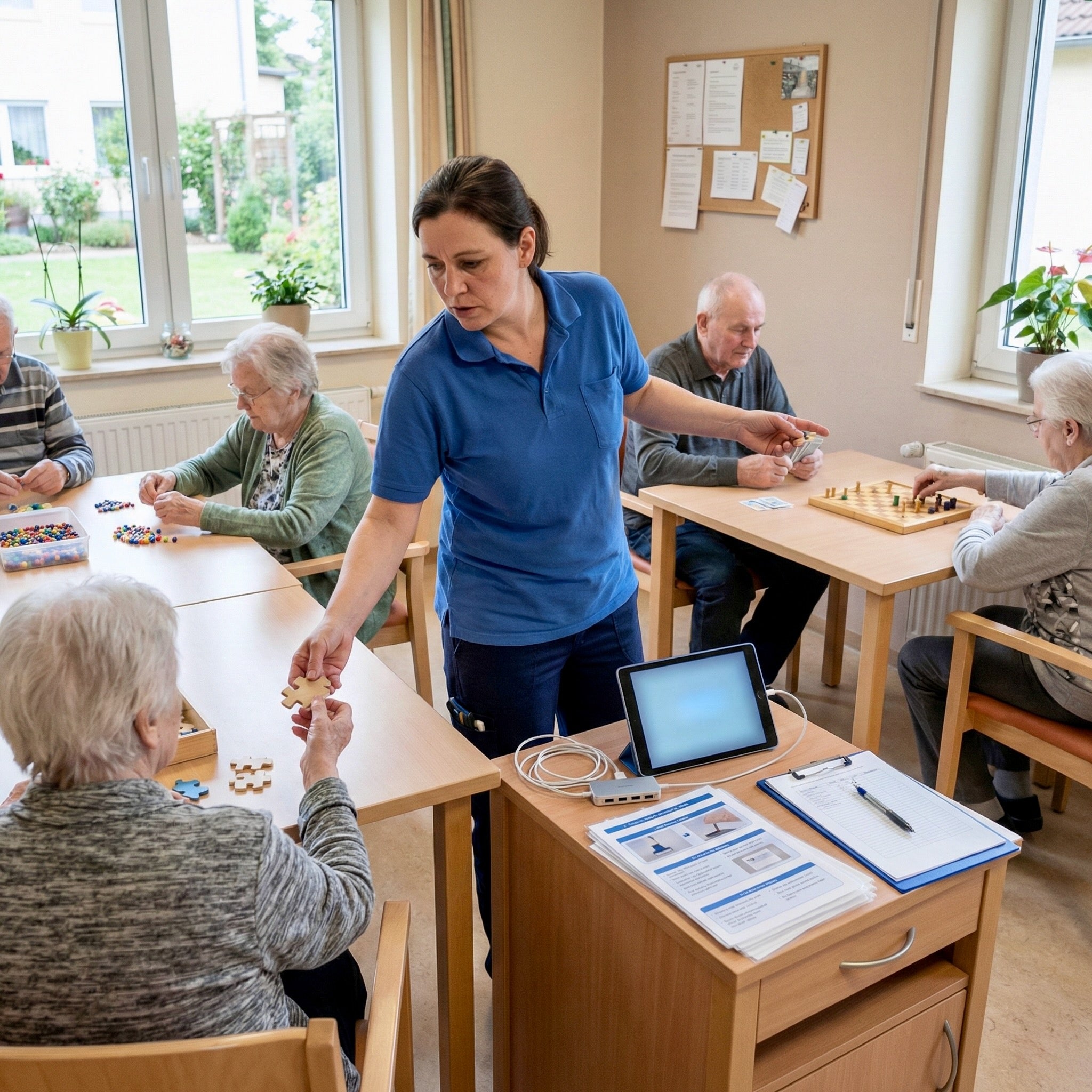 Gleichzeitig sind Betreuungskräfte stark gebunden und haben kaum Kapazität für individuelle Aktivierung.