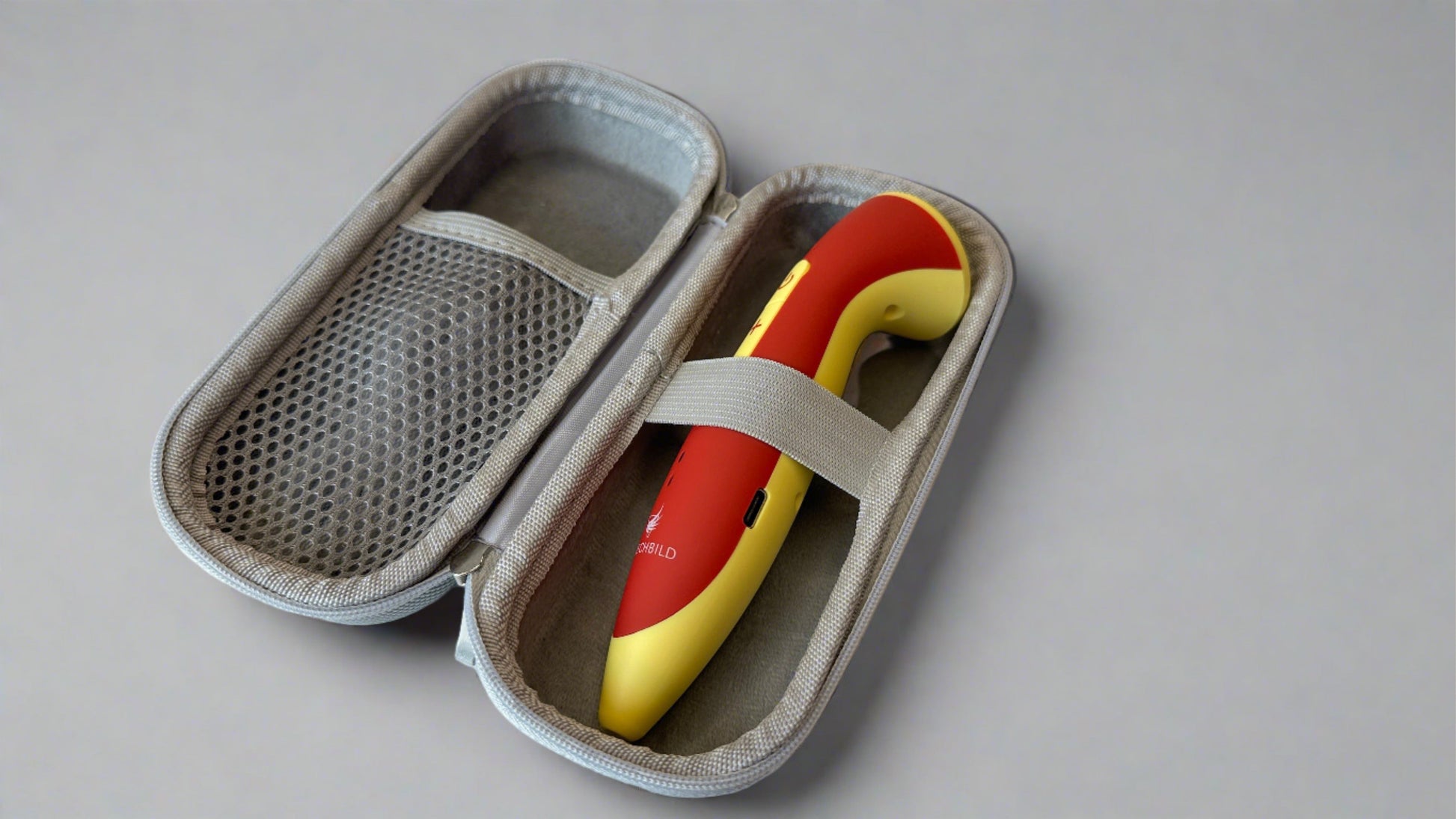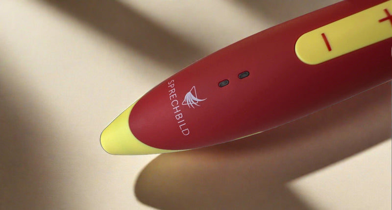 Its unique shape and soft-touch surface make it comfortable to hold, even for delicate hands. Weighing just 55g (about the weight of an egg), the pen is light enough to avoid fatigue, even with prolonged use. Its powerful speaker and the option to connect headphones offer a clear listening experience, even for those with hearing difficulties. Easy to operate with only three buttons, the Hörstift allows your loved ones to reminisce independently. The sturdy design and an optional hand strap provide extra safety and comfort.